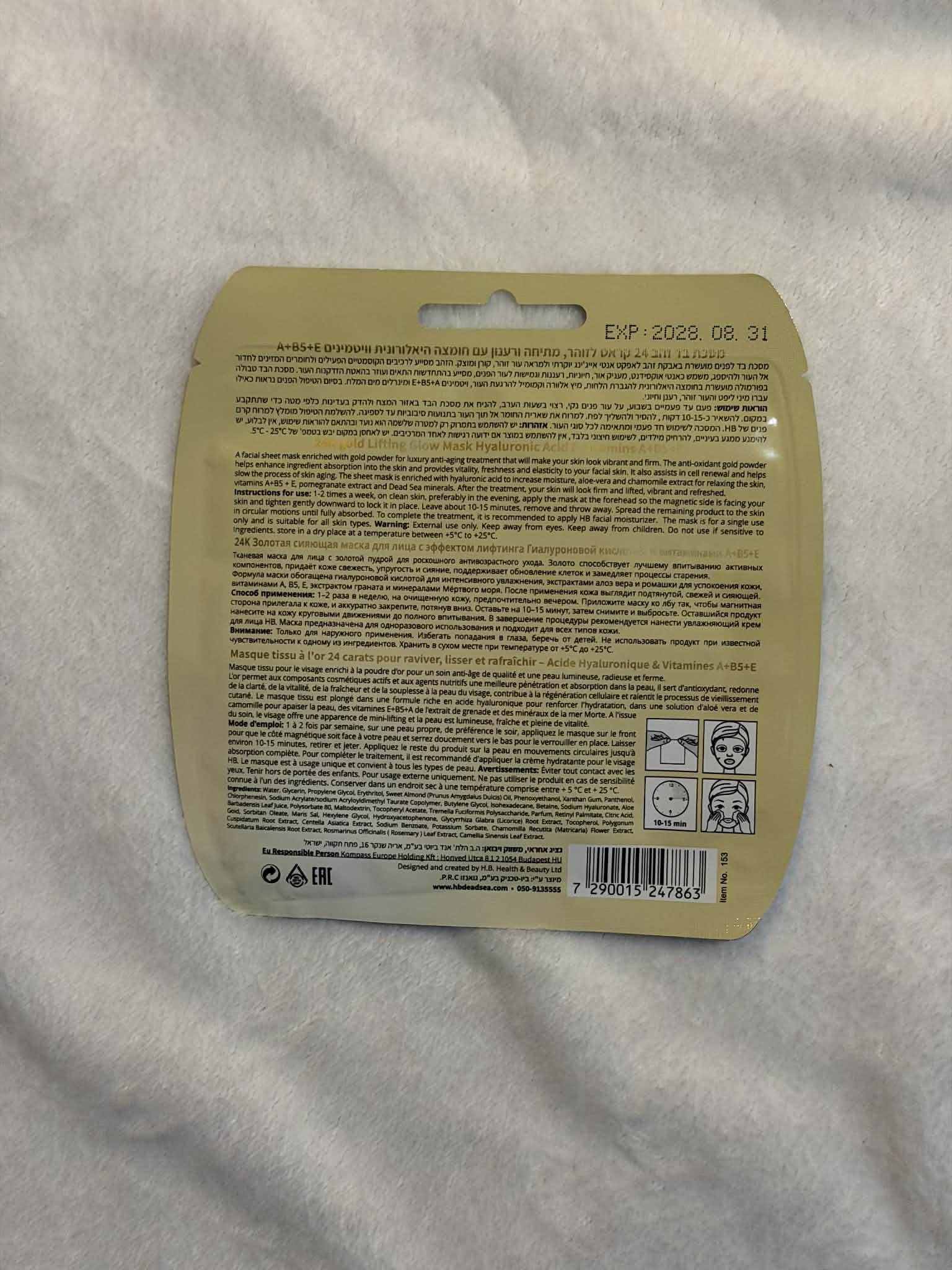 The H&B 24 K Gold Lifting Mask is a luxury anti-aging face mask enriched with Dead Sea minerals + gold particles designed to give a lifting and glowing effect.