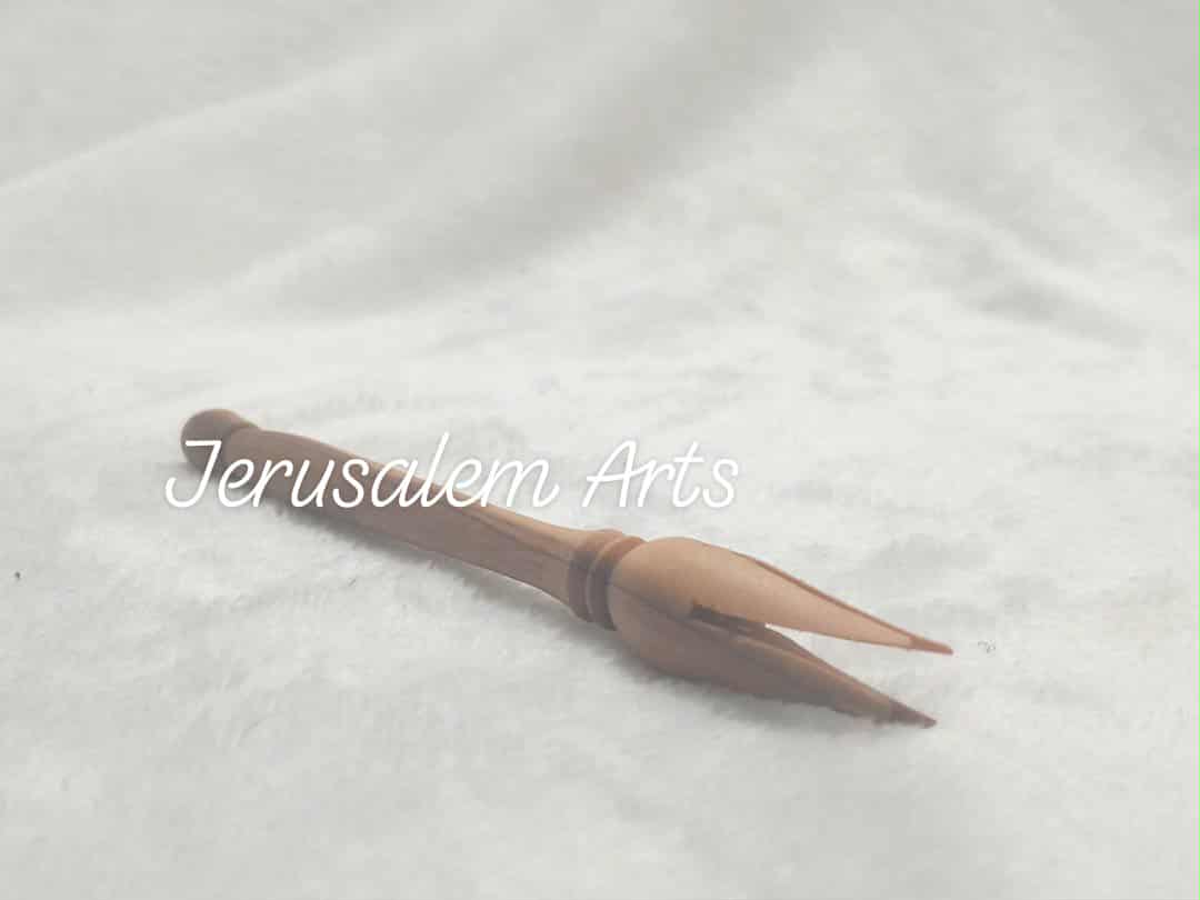 This elegant cheese fork is handmade from genuine olive wood sourced from the Holy Land. Its smooth finish and beautiful natural grain make it perfect for serving cheese, fruits, or small appetizers. Each fork is unique.