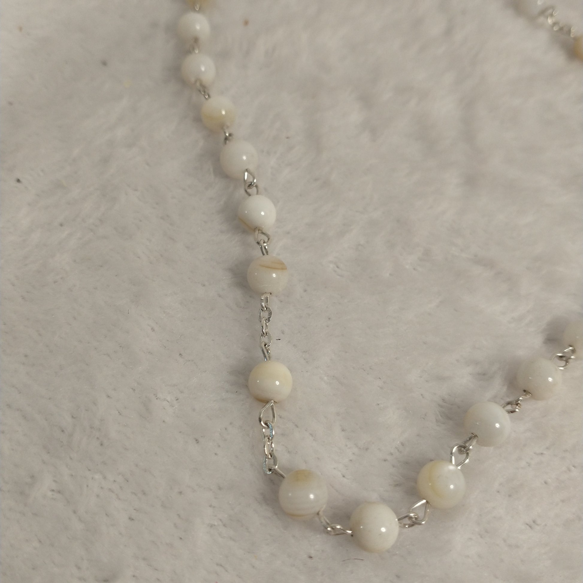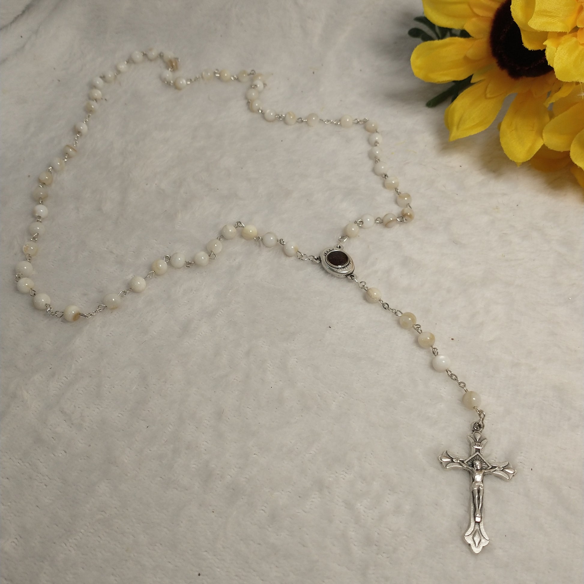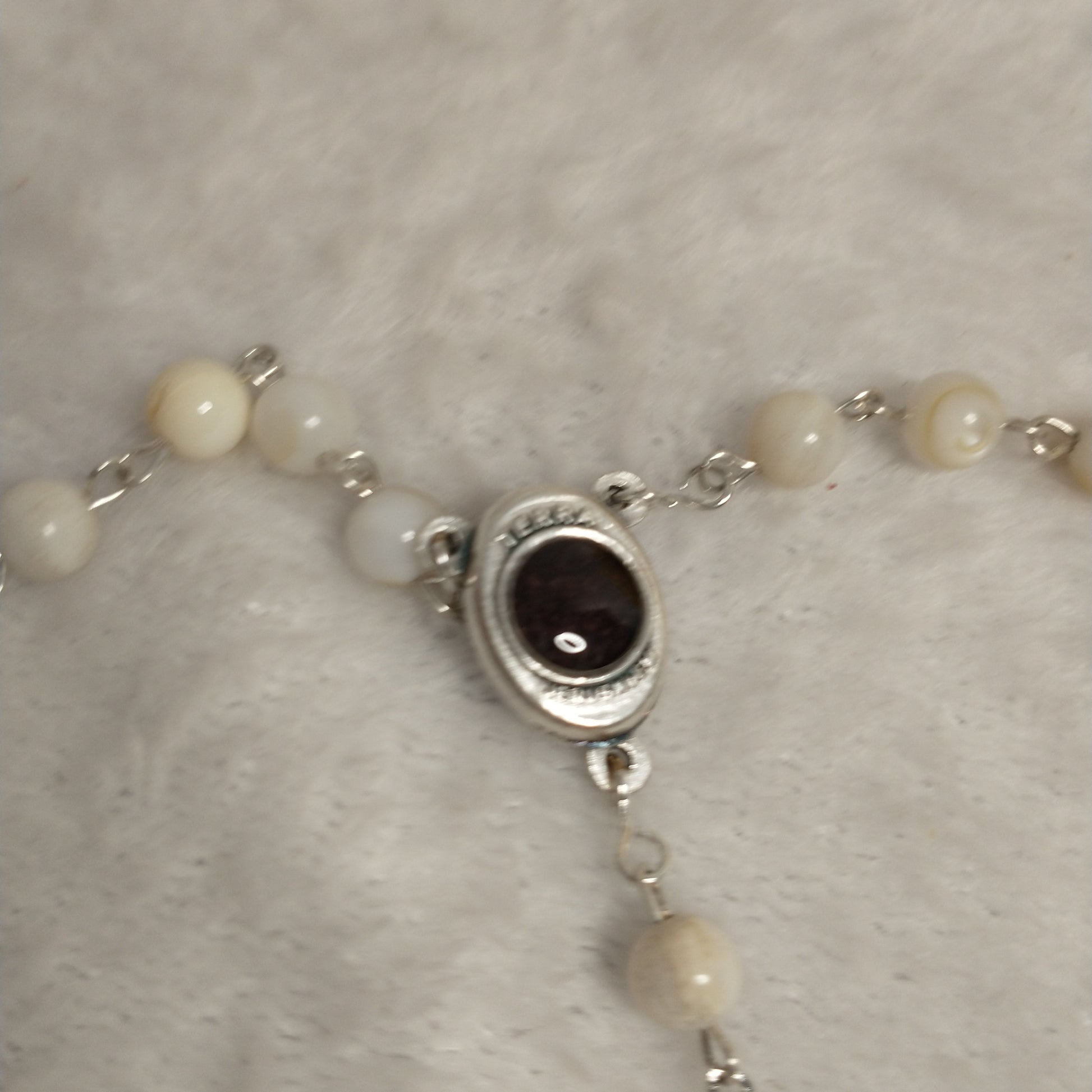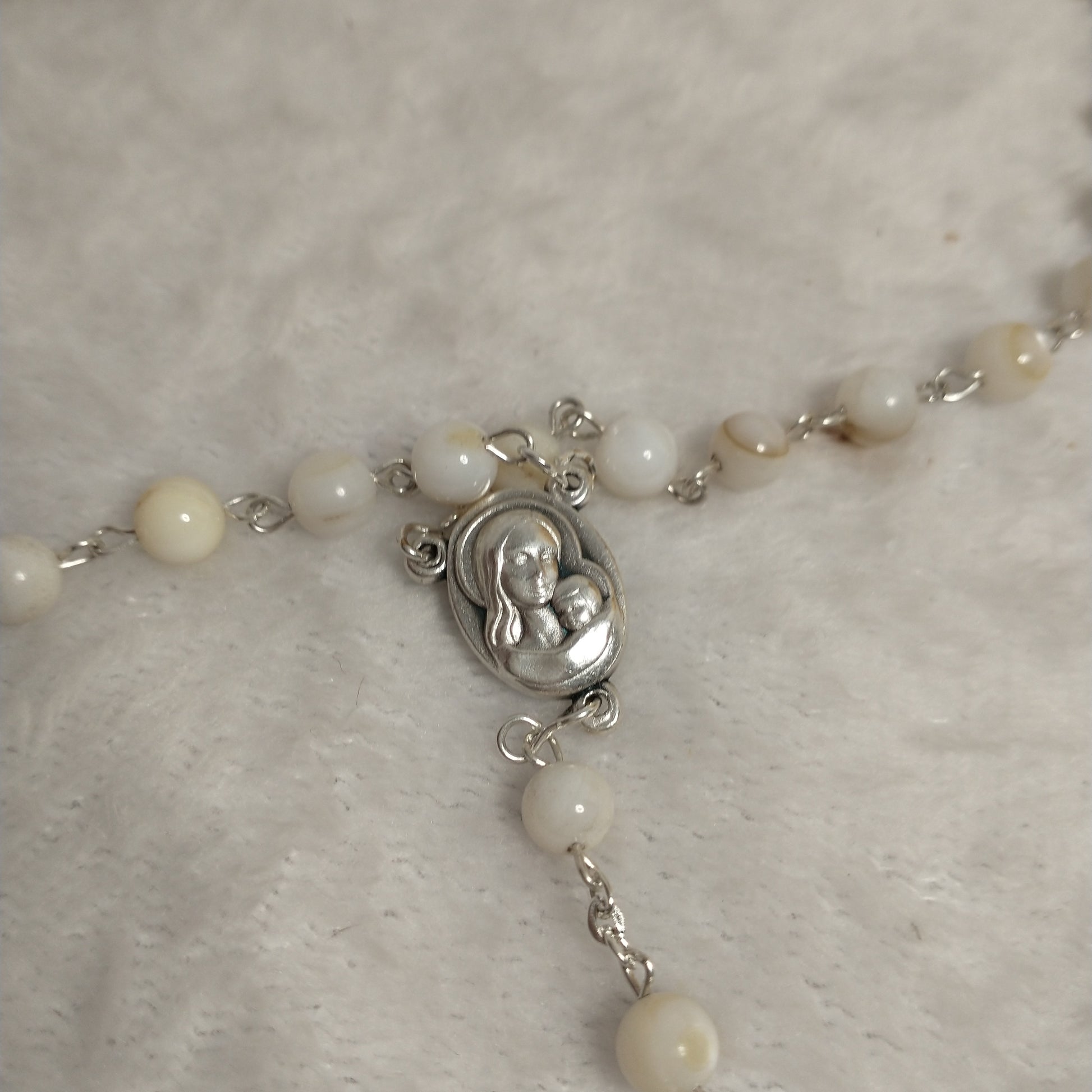 Natural white Mother of Pearl rossary with holy Soil from Jerusalem hand made .