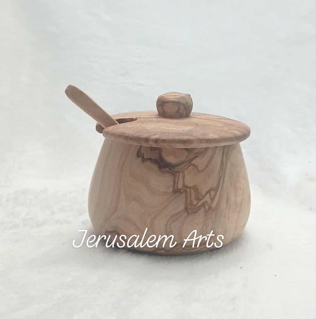 Spices jar with spoon olive wood handcrafted in the HolyLand