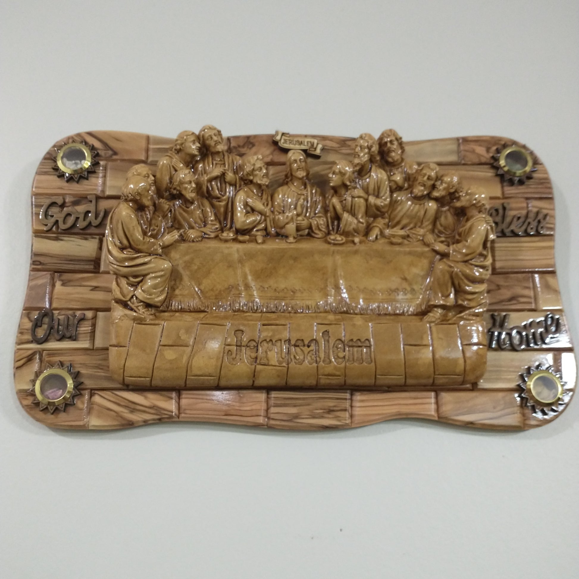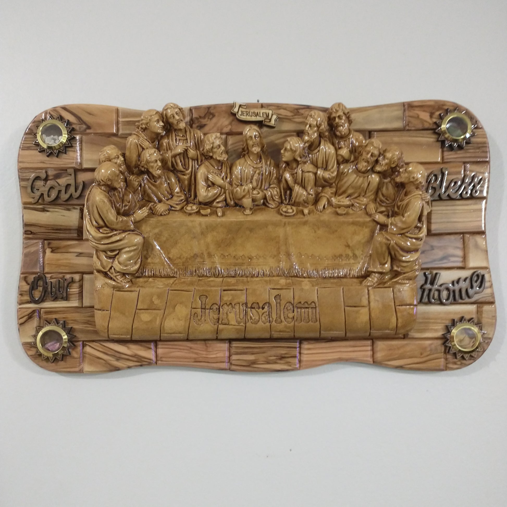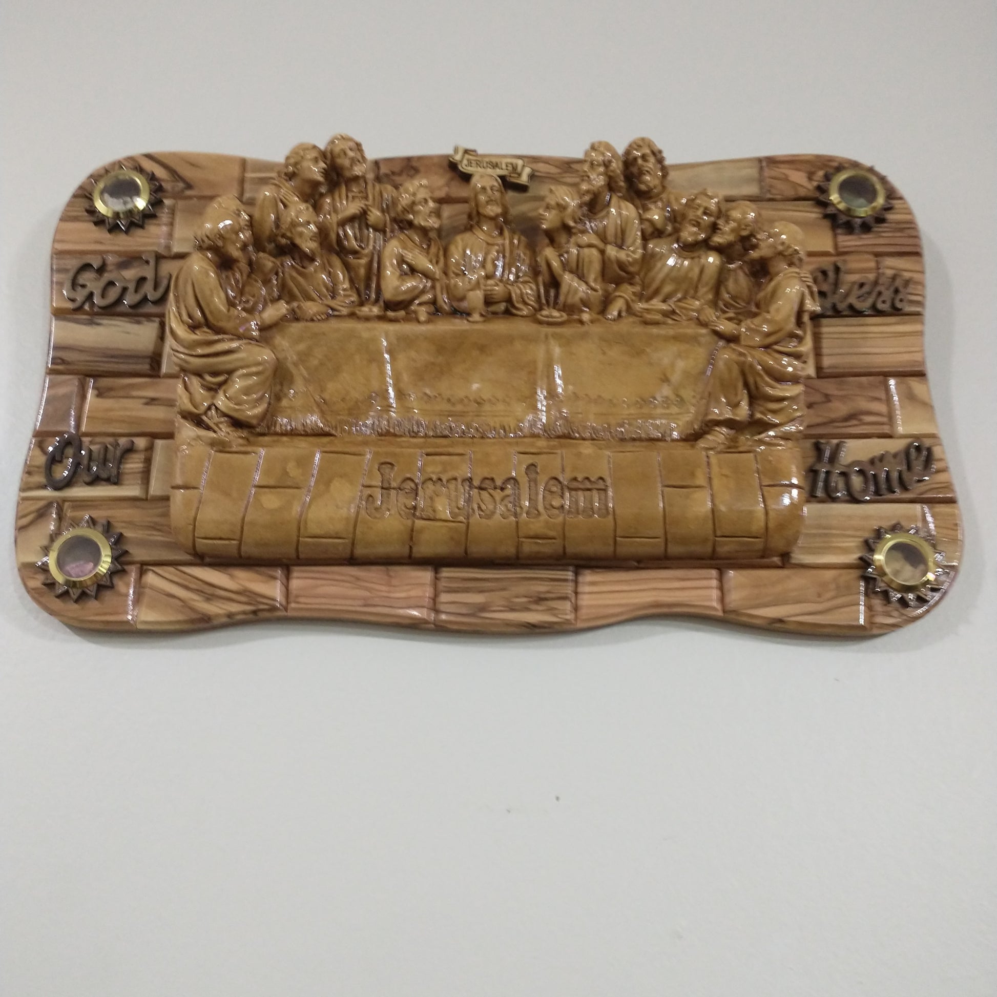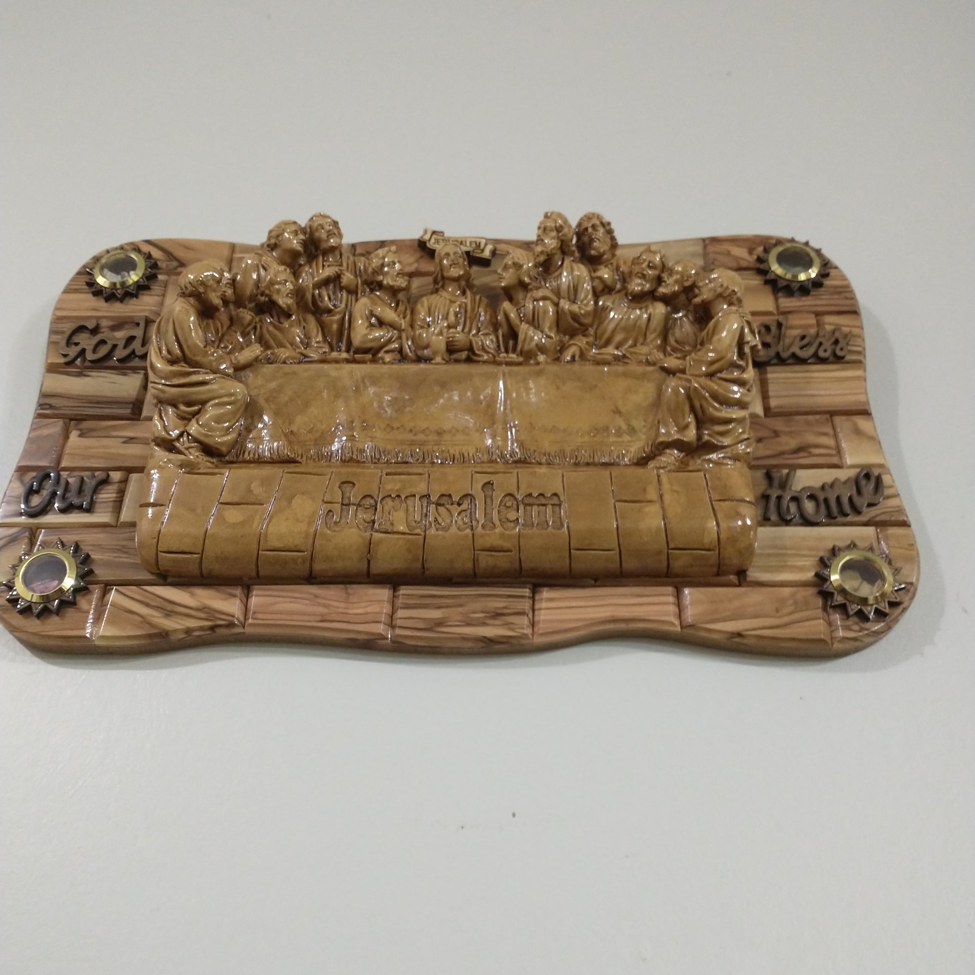 The Last supper ,Olive wood Hand made in Bethlehem / the Holy land ,this Last supper come with Holy frankensans ,stone , flowers , leaves all of them Blessed in the Holy places from Holyland.