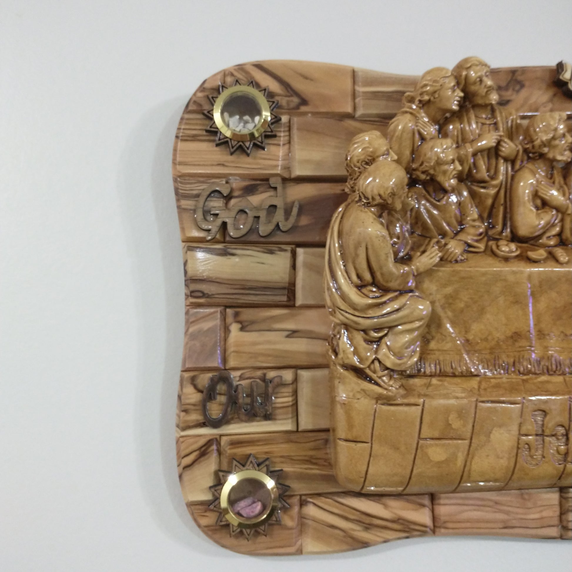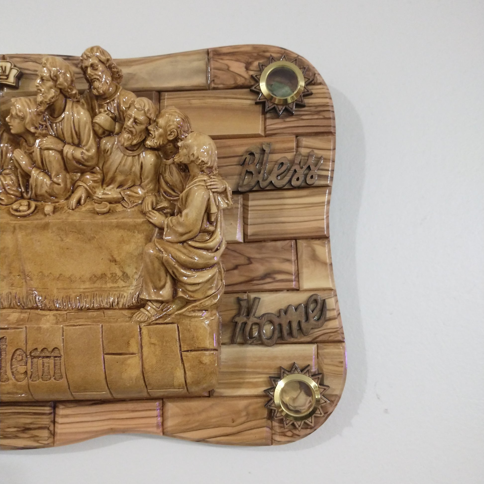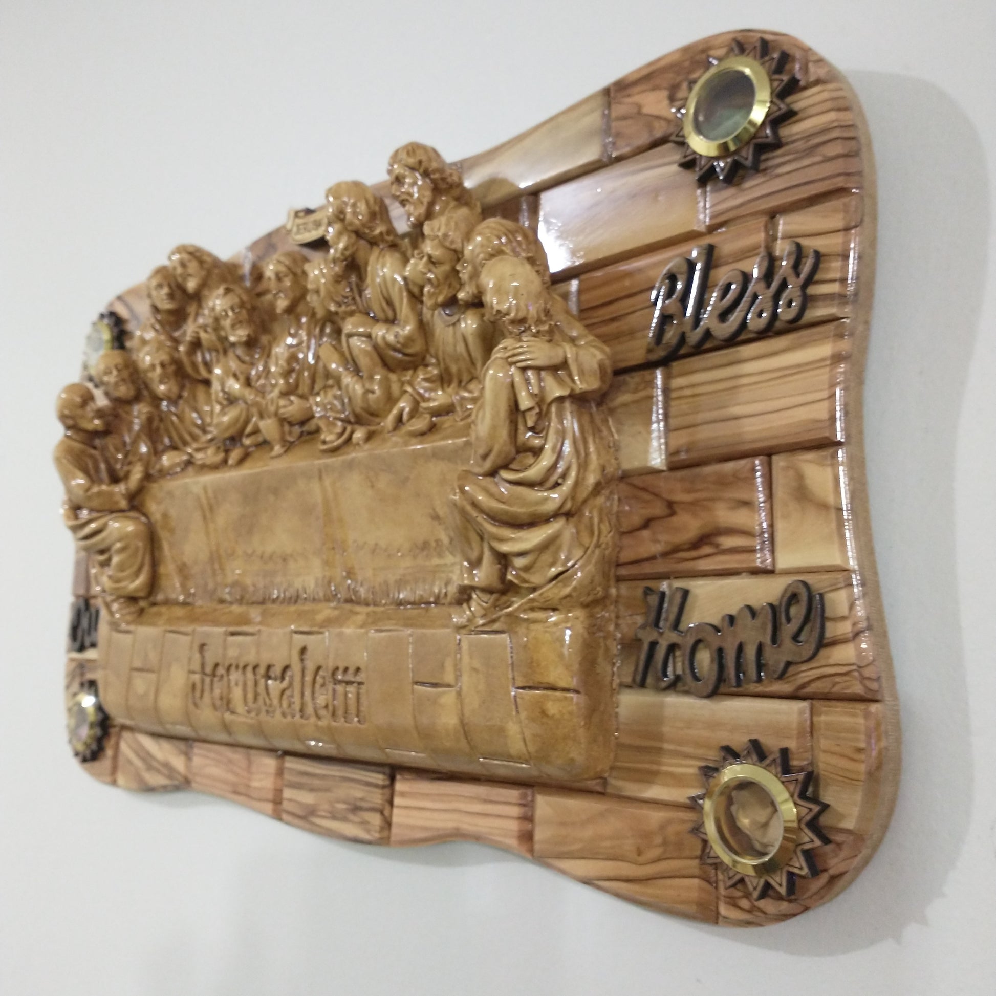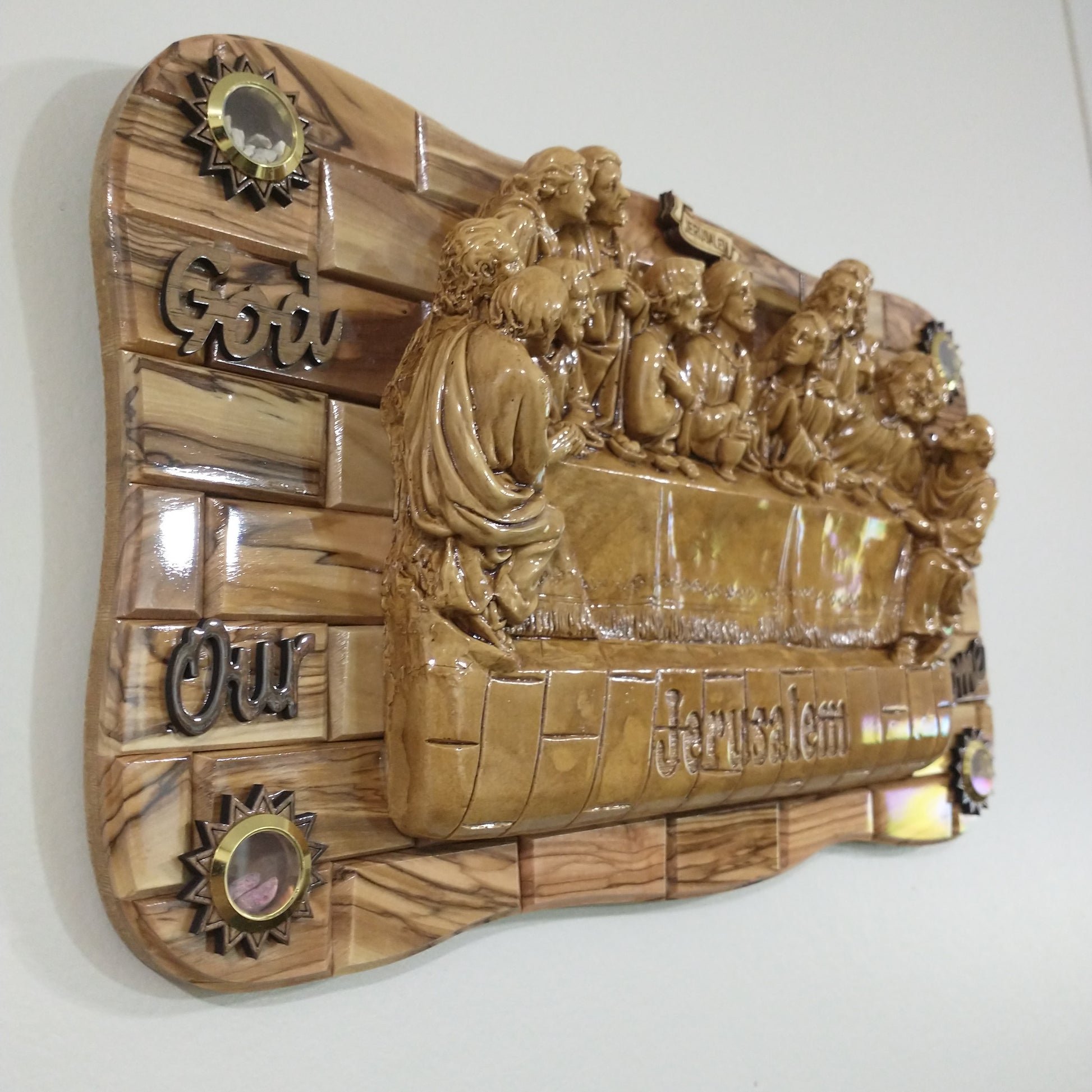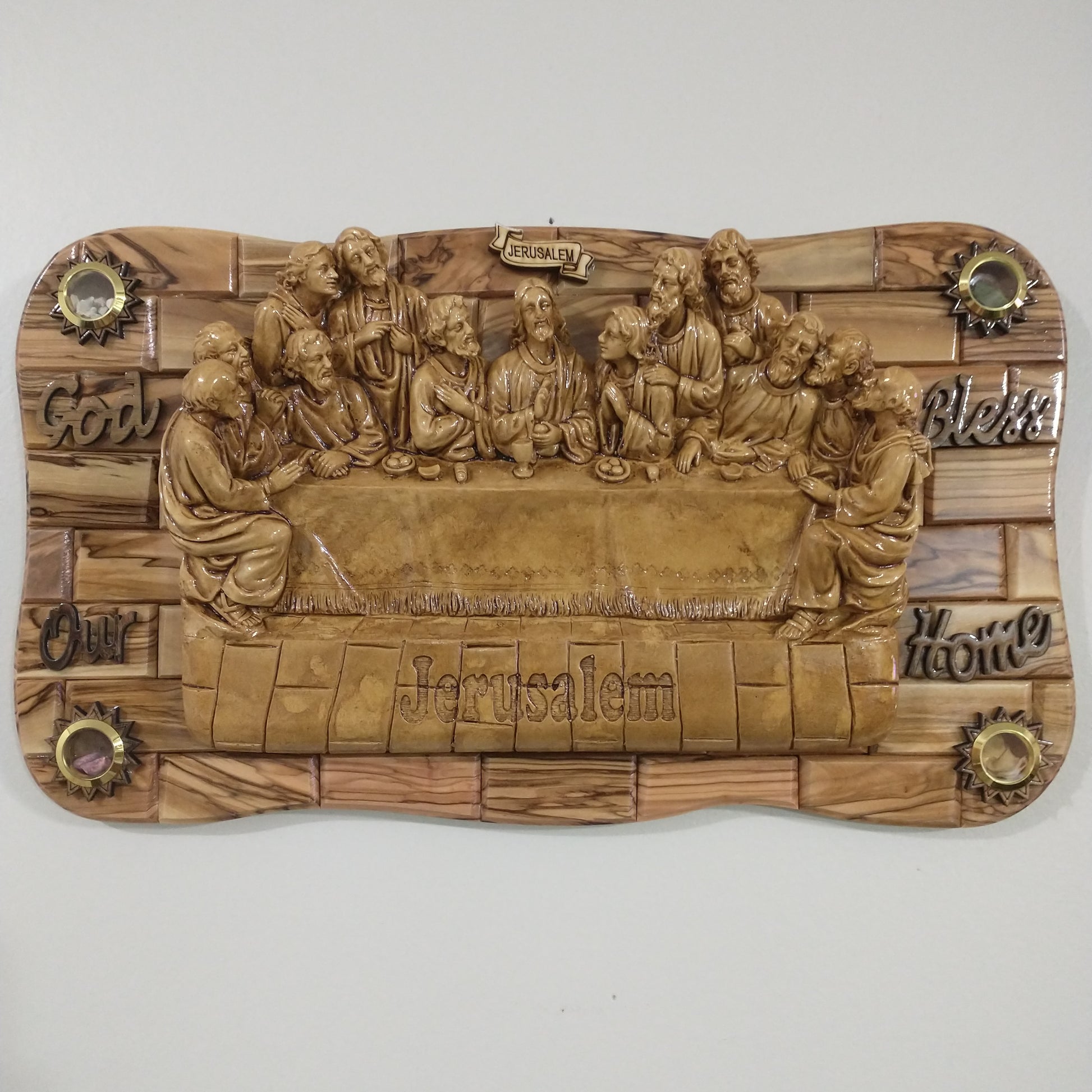 The Last supper ,Olive wood Hand made in Bethlehem / the Holy land ,this Last supper come with Holy frankensans ,stone , flowers , leaves all of them Blessed in the Holy places from Holyland.